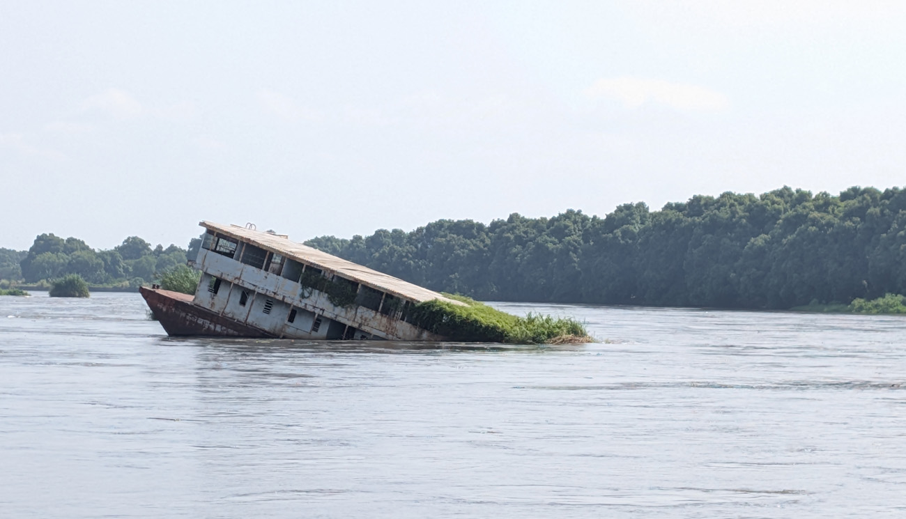 One photo from South Sudan: a wrecked passenger ferry on the Nile. It’s been stuck there for at least a decade, as there no funds and no motivation to remove it.