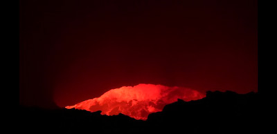 Distant, smoky, glimpses of red lava